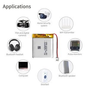• STORAGE & APPLICATION—Keep the cells in 40%-60% charged state during long period storage. We recommend to charge the battery every 3 months after receipt of the battery and maintain the voltage 3.7-4.0V. Store battery in cool and dry place.//SUITABLE for Bluetooth speaker, dash cam, keyboard and mouse, Wi-Fi smart home systems, PDA and digital cameras, GPS, monitoring units, e-books, tracking devices, sleep management equipment, blood oxygen tracking equipment, pulse monitors, wireless, IoT.