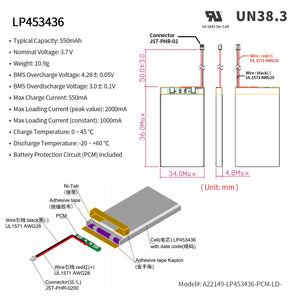 LP453436 -- 3.7V 550mAh