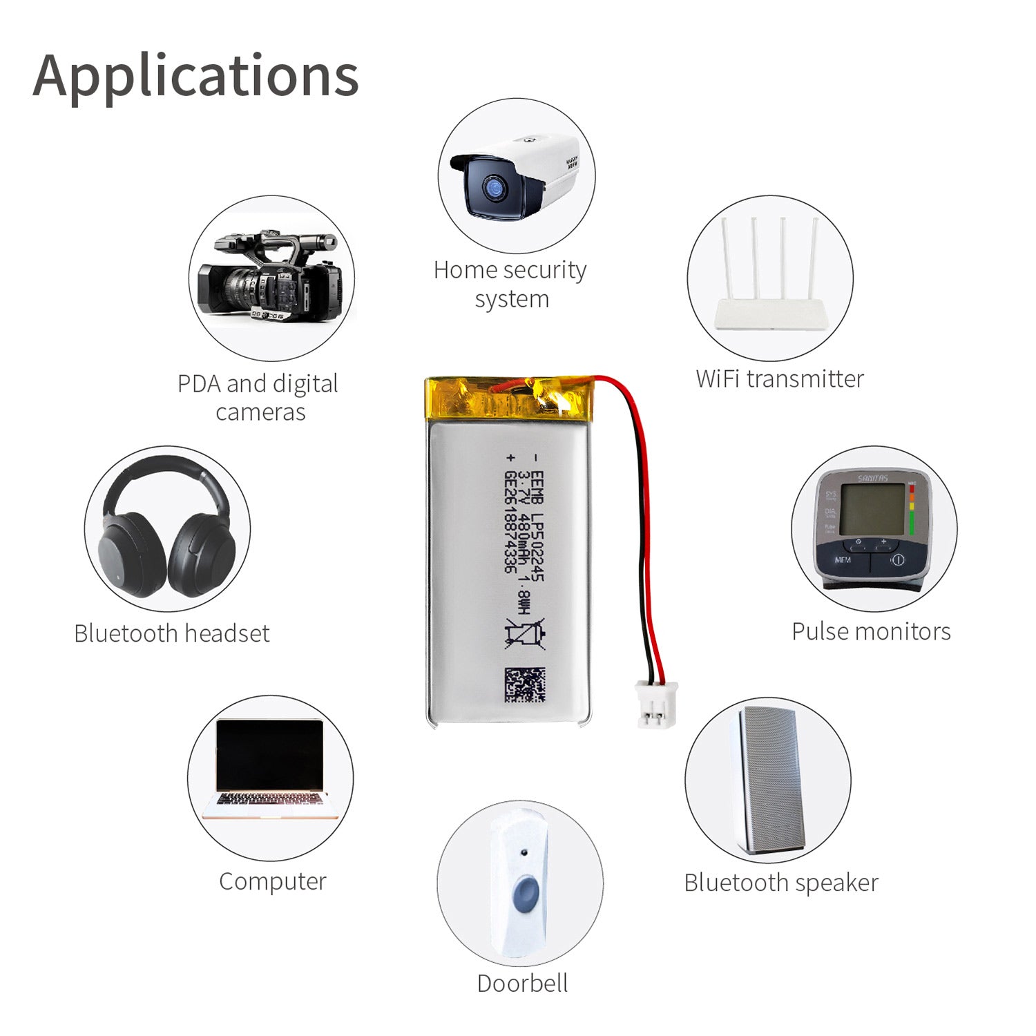 • APPLICATION—Suitable for bluetooth speaker, dash cam, keyboard and mouse, Wi-Fi enabled smart home systems, PDA and digital cameras, GPS, monitoring units, notebook computers, e-books, telematics, tracking devices, sleep management equipment, blood oxygen tracking equipment, pulse monitors.