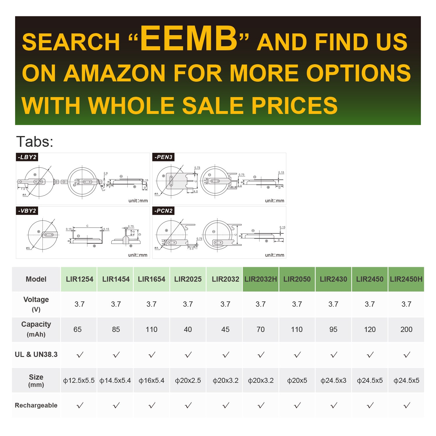 EEMB Battery, a 28-Years' professional Lithium Battery Manufacturer, specialized in producing Primary (non-rechargeable) & Rechargeable Lithium battery cells, custom battery packs and batteries with various terminations, pins, wires & connectors.