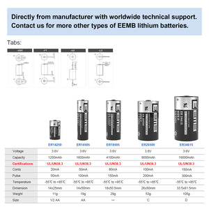 EEMB Battery, a 28-Years' professional Lithium Battery Manufacturer, specialized in producing Primary (non-rechargeable) & Rechargeable Lithium battery cells, custom battery packs and batteries with various terminations, pins, wires & connectors.
