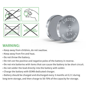 • BASIC INFO—VOLTAGE: 3.7V; Capacity: 45mAh; Weight: approximate 2.6g; Diameter: 20mm, Height: 3.2mm. Please charge the battery with EEMB dedicated charger.